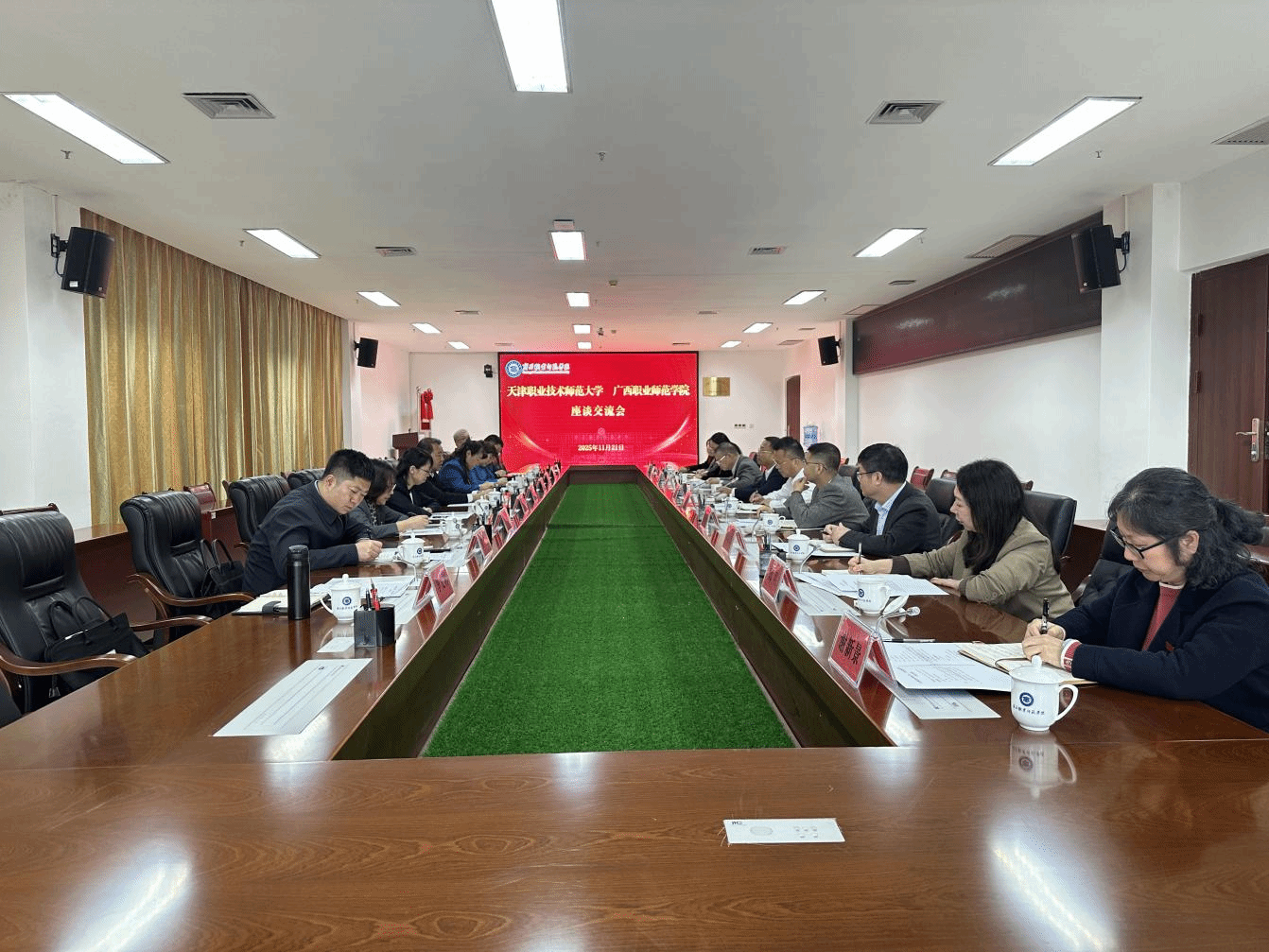 11月21日,张金刚一行与广西职业师范学院周鸿、夏国恩等校领导和相关部门负责人举行座谈