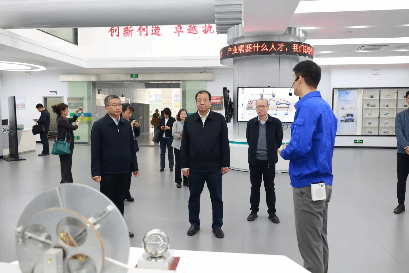 11月24日,在广西科技师范学院汽车产业学院,张金刚一行听取该校深化校企合作、产教融合服务当地汽车产业情况介绍