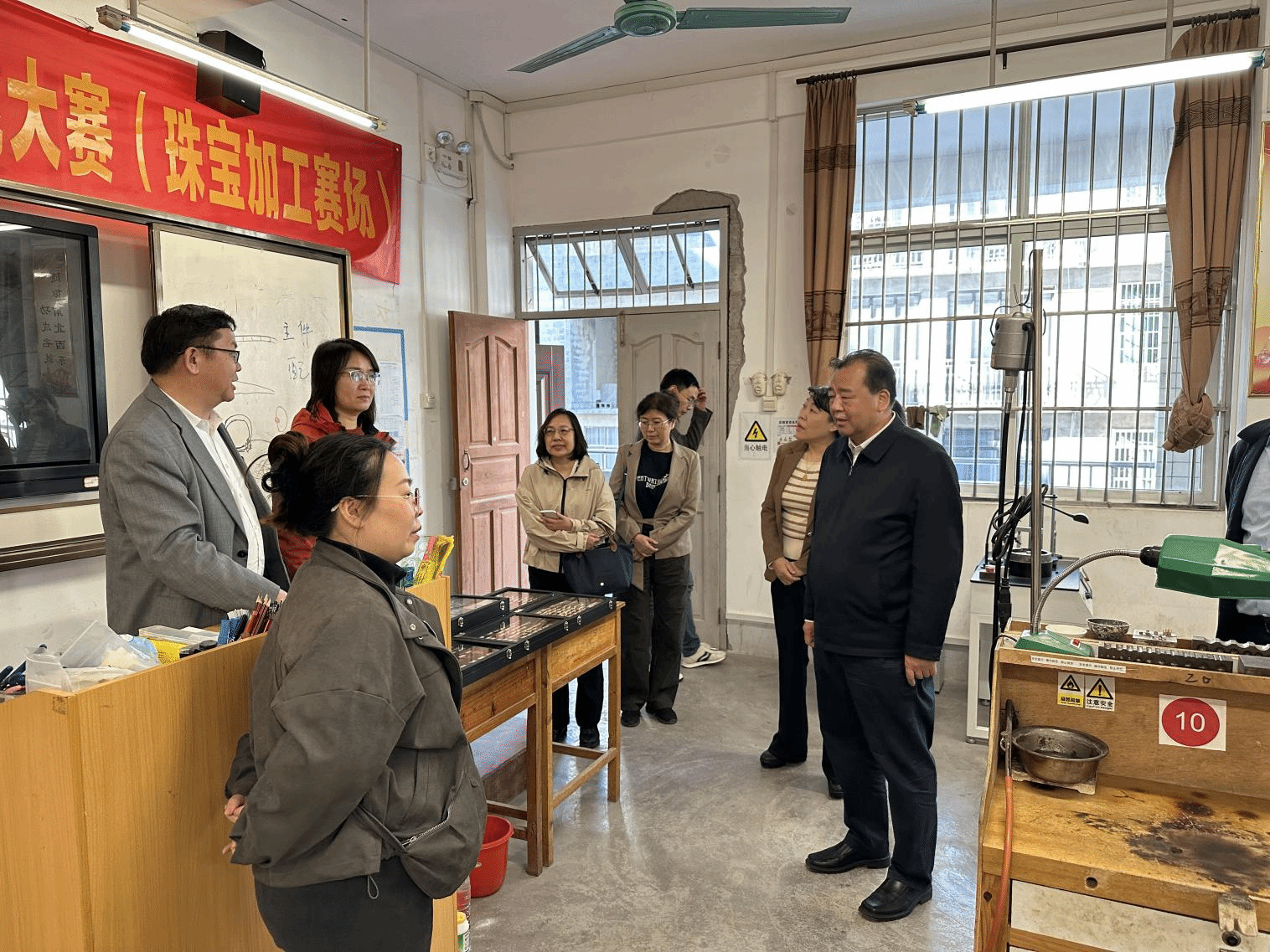 11月22日,在德保县职业技术学校,张金刚一行听取该校珠宝加工实训情况介绍