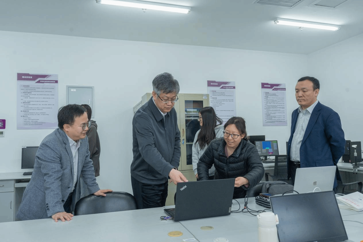 调研期间,郑清春一行首先实地走访学院各办公室、实验室。亲切慰问正在工作和学习的教师、学生,并与学校原副校长吕景泉教授亲切交谈。在学院实训实验中心,郑清春一行仔细察看实验设备配置、运行管理及教学使用情况,深入了解学院在实训实验和实践教学等方面的进展与成效。