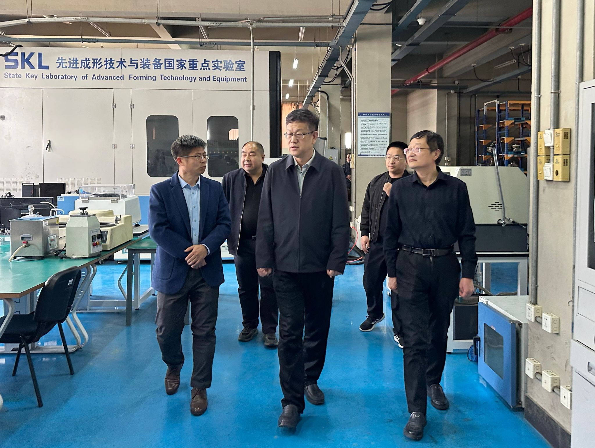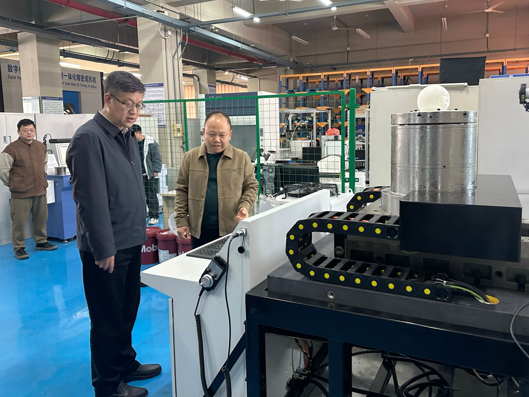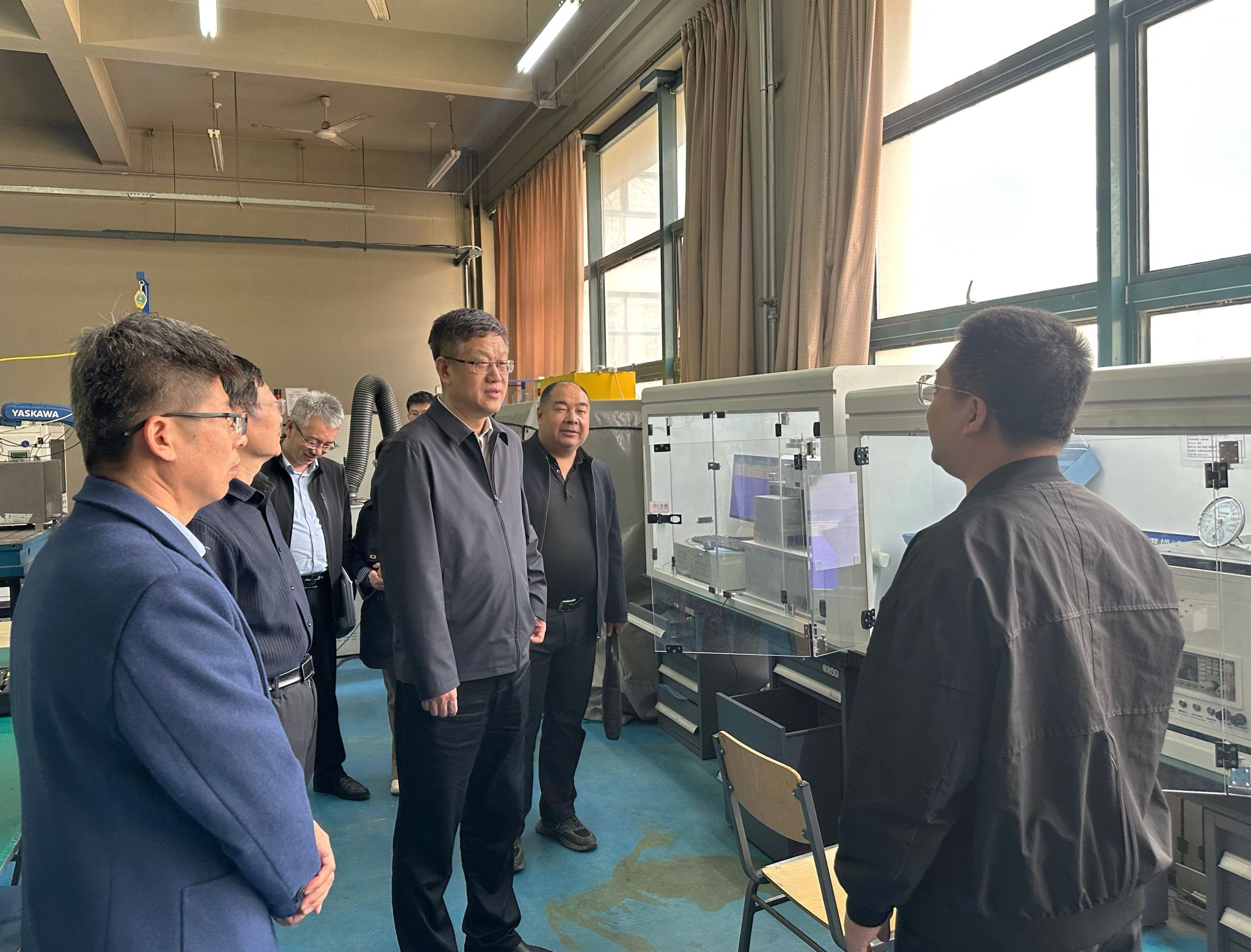 郑清春一行首先实地考察了学院热加工中心,详细了解实验室运行管理、设备配置及服务科研教学情况,对学院在工程实践教学和高技能人才培养方面的特色做法给予肯定。随后,郑清春一行走访逸夫楼实验室,实地察看实验室设备运行、教学科研支撑及学生实践情况,深入了解学院在智能制造、先进加工工艺等领域的实验条件建设进展。