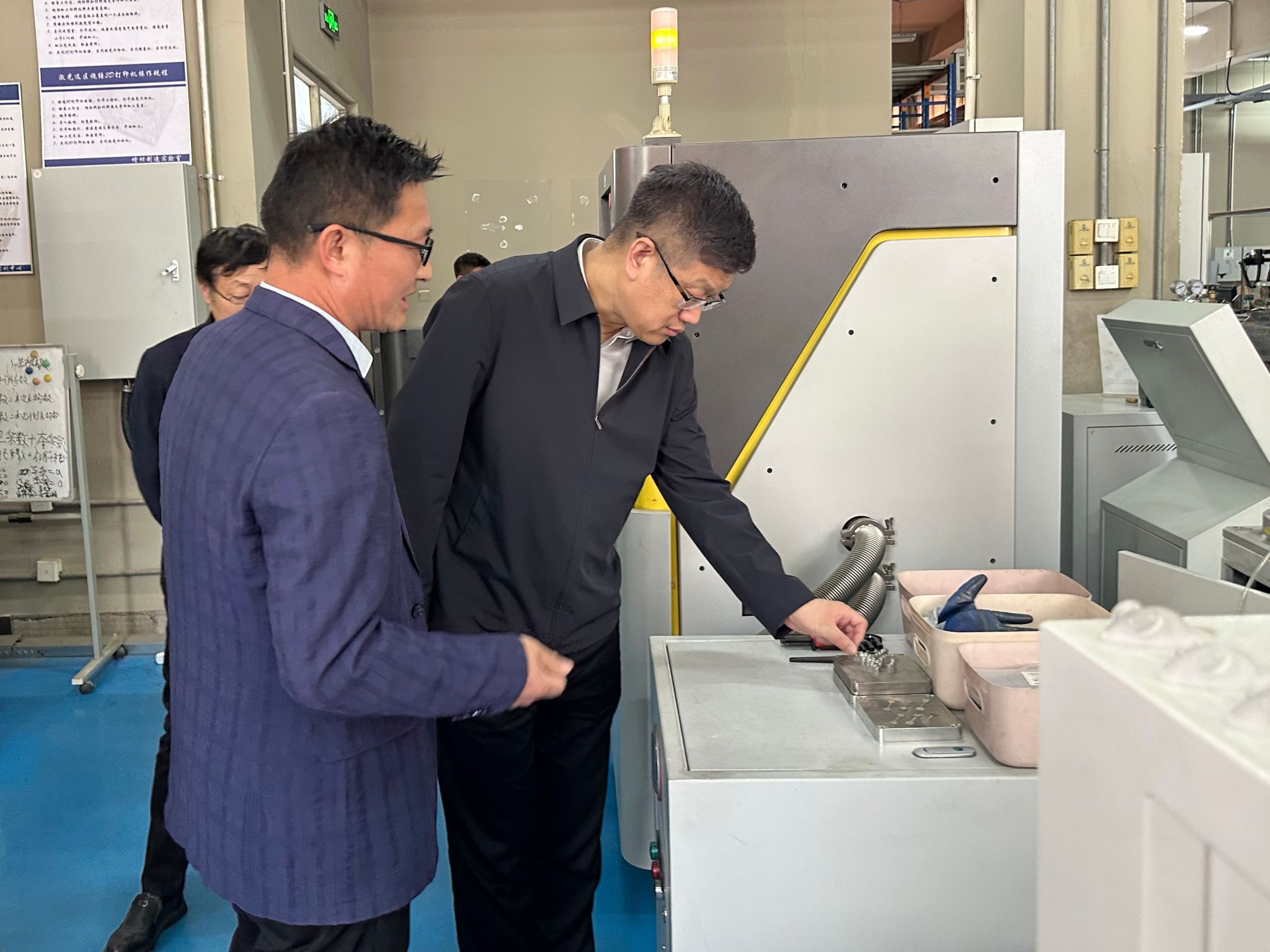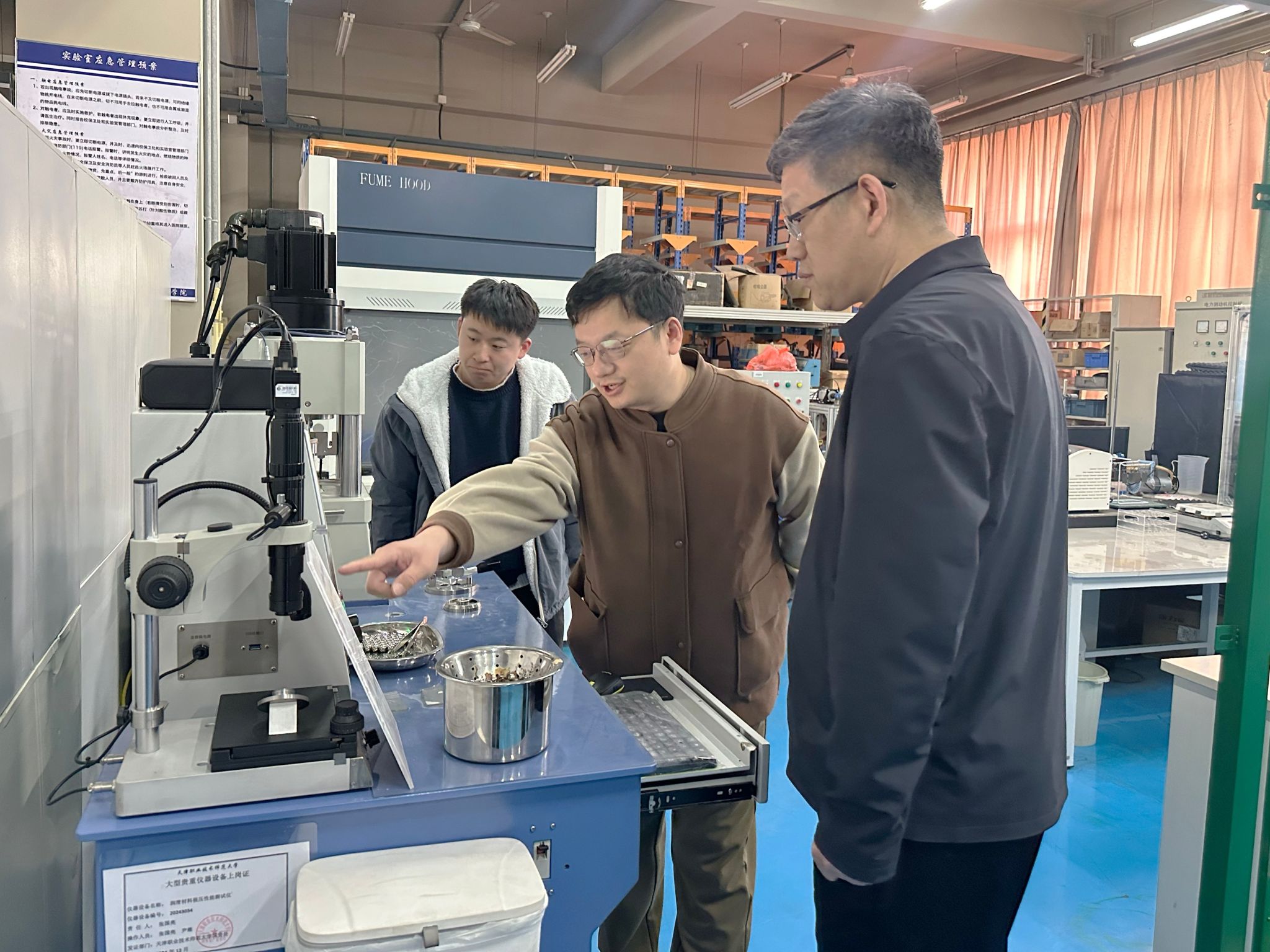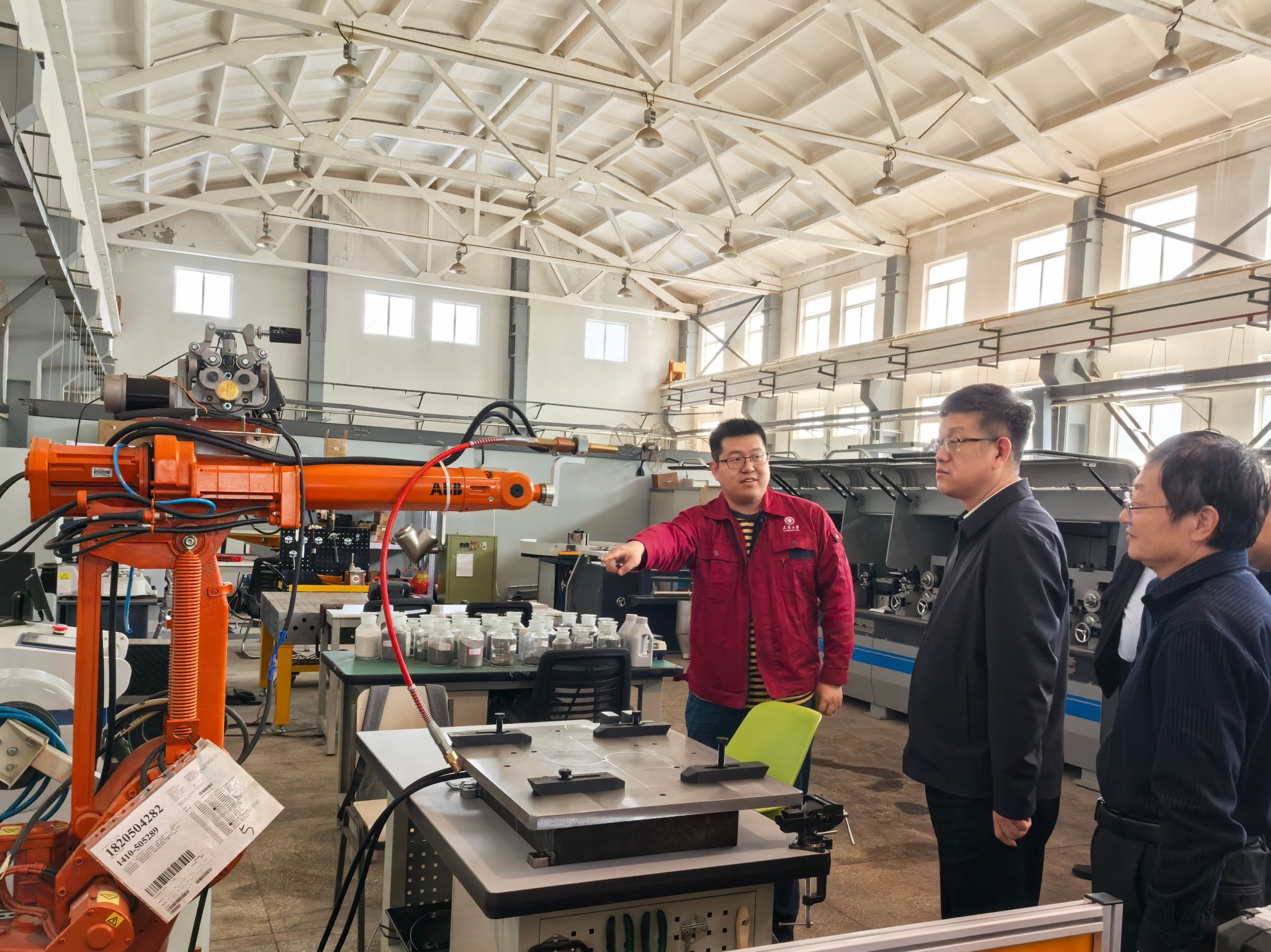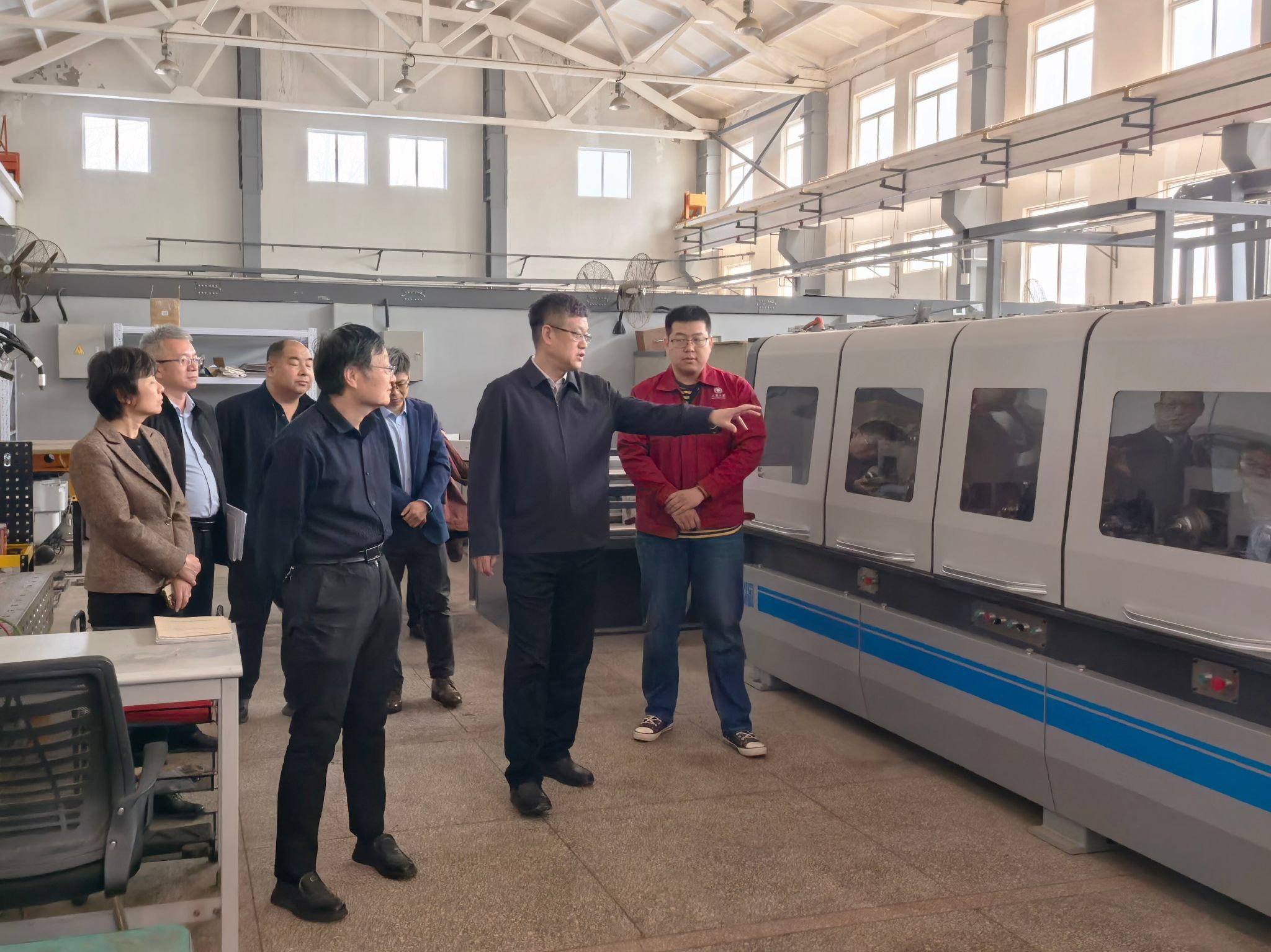郑清春一行首先实地考察了学院热加工中心,详细了解实验室运行管理、设备配置及服务科研教学情况,对学院在工程实践教学和高技能人才培养方面的特色做法给予肯定。随后,郑清春一行走访逸夫楼实验室,实地察看实验室设备运行、教学科研支撑及学生实践情况,深入了解学院在智能制造、先进加工工艺等领域的实验条件建设进展。