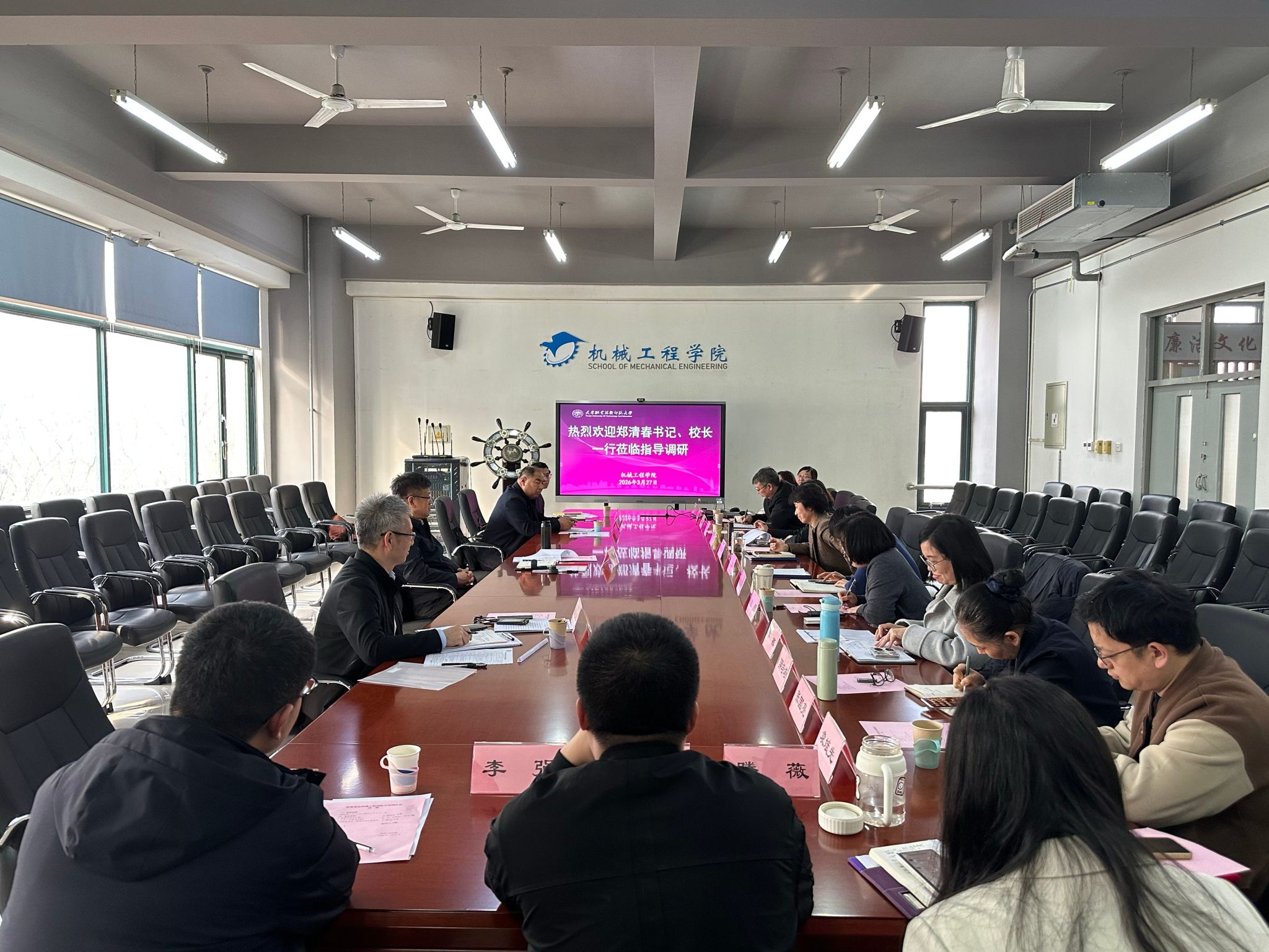 学校党委办公室、校长办公室,科研处,战略规划办公室相关负责同志陪同调研。机械工程学院领导班子全体成员、党支部书记及骨干教师代表参加调研座谈。