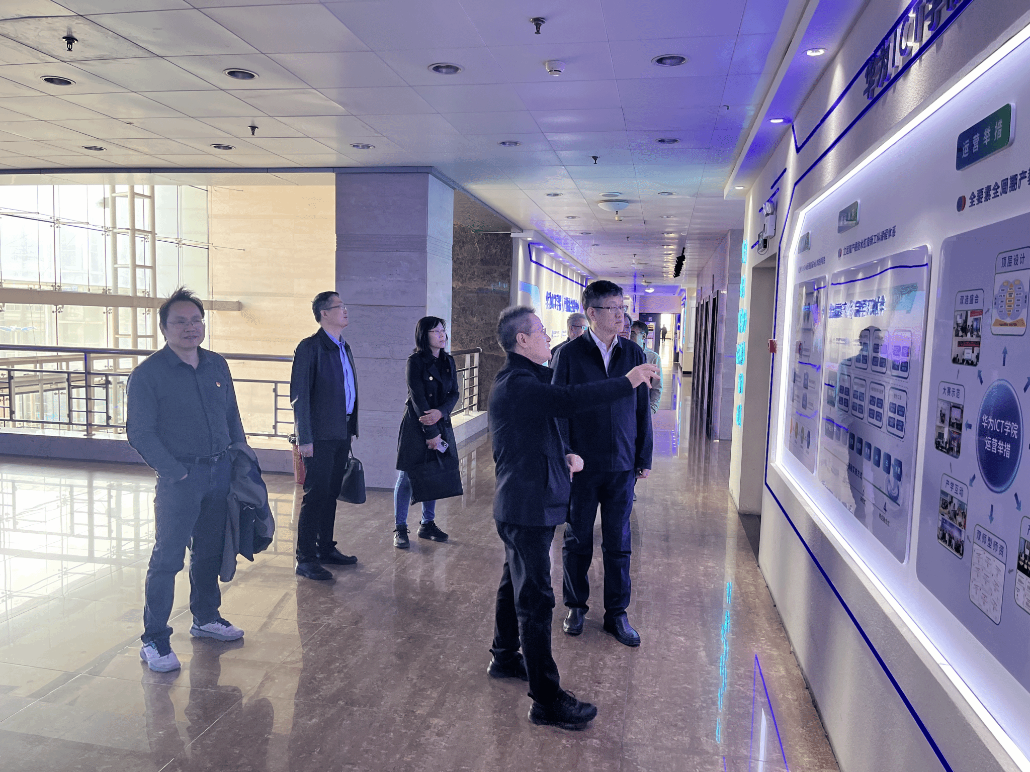 调研期间,郑清春一行实地走访华为ICT学院、国际VUE考点、大数据创新实验室、人工智能创新实验室等平台,察看设备运行与教学使用情况,详细了解产教融合、学科建设、科研成果转化及学生科技创新等工作,对学院发展成效给予充分肯定。